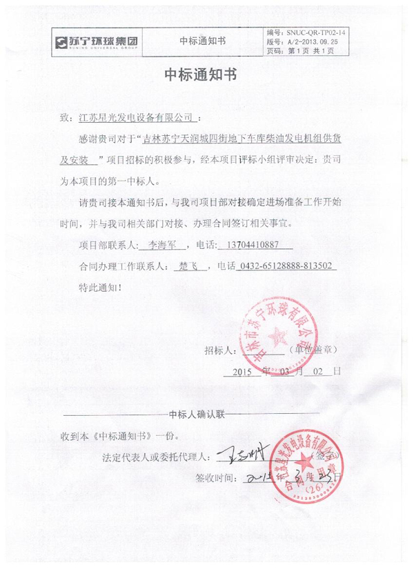 吉林省蘇寧天潤城四街 吉林市蘇寧環球400KW里卡多配雙同